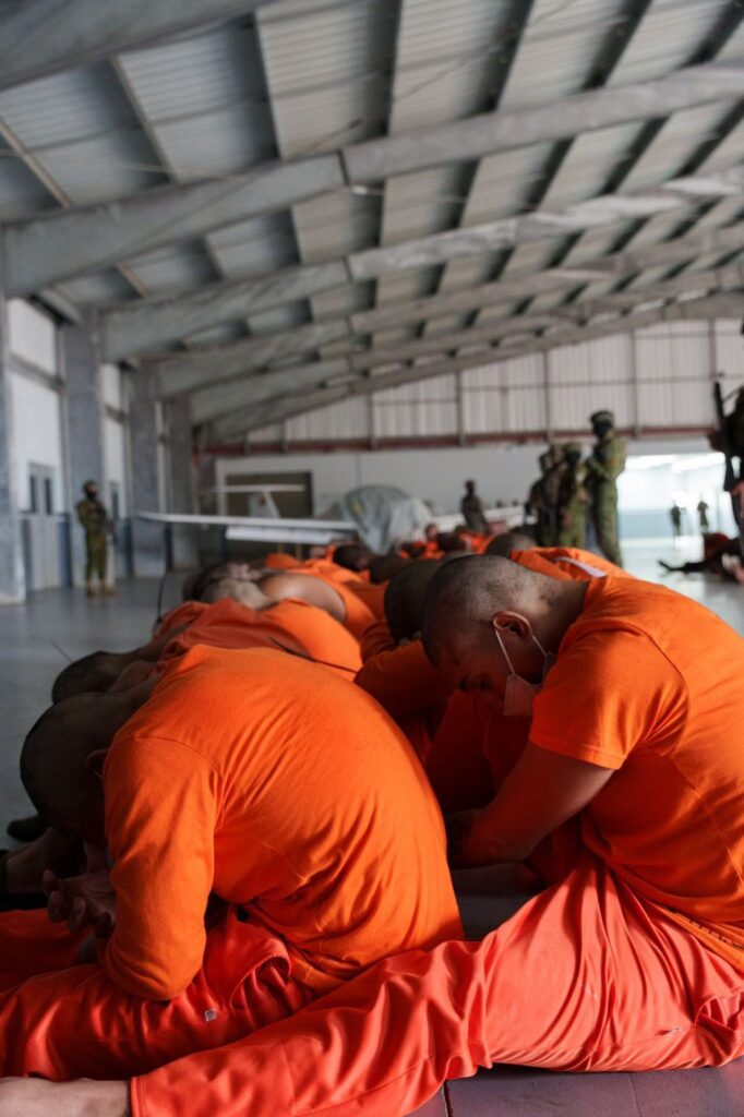 “Ya empezarán con la quejadera”, publicó Noboa en su cuenta de X, junto a fotografías en las que se observa a los presos rapados y sentados en el suelo, en imágenes que remiten a las cárceles del gobierno de Nayib Bukele en El Salvador.