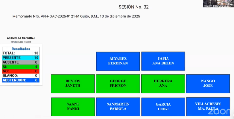 Sin embargo, Herrera solo tuvo el respaldo de los otros tres asambleístas del correísmo que componen la comisión, mientras que los seis legisladores de la bancada oficialista ADN y sus aliados, entre ellos el presidente de la Comisión, Ferdinan Alvarez, se abstuvieron sin argumentar la decisión.