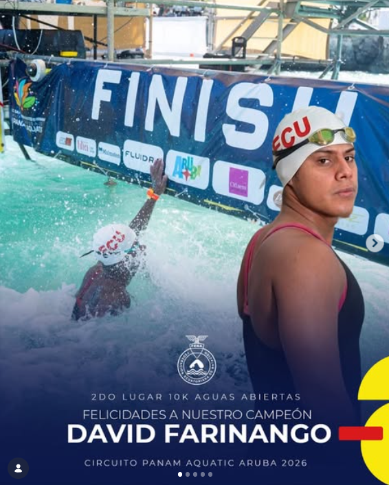 En esta competencia también participó David Farinango, quien se llevó el segundo puesto en los 10 kilómetros Aguas Abiertas, por lo que Ecuador termina el Circuito con destacadas participaciones.