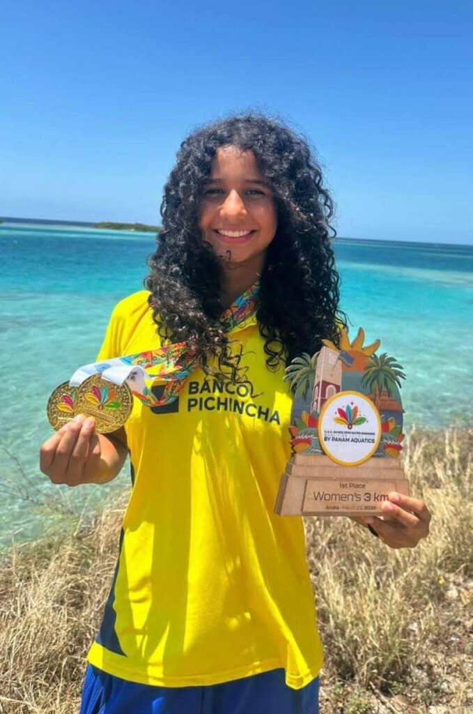 Uma Córdova es una de las grandes promesas de la natación ecuatoriana. En 2025 se coronó campeona en los 5 kilómetros en el Sudamericano Juvenil, en Brasil.