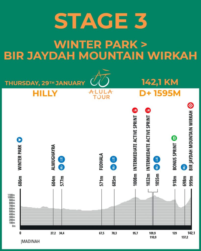 Este jueves llega la etapa clave de la carrera, la cuarta, entre Winter Park y Bir Jaydah Mountain Wirkah (142,1 km), la de mayor desnivel y la única llegada en alto del recorrido. La subida final, de 4,9 kilómetros al 5,8%, con rampas cercanas al 10%, pondrá a prueba a los velocistas y ofrecerá una primera oportunidad real para los escaladores. Milan, de momento, sigue siendo intocable.