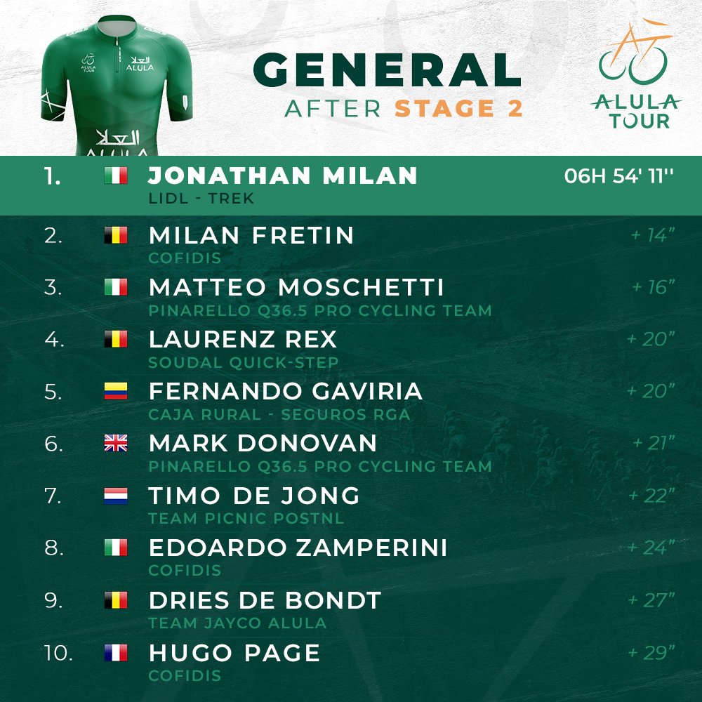El viento volvió a marcar la segunda etapa del AlUla Tour, pero ni los abanicos ni el ritmo endiablado del pelotón lograron alterar el desenlace. Jonathan Milan (Lidl-Trek) volvió a imponer su ley al esprint y se apuntó su segunda victoria consecutiva en Arabia Saudí, reforzando además el maillot verde de líder.