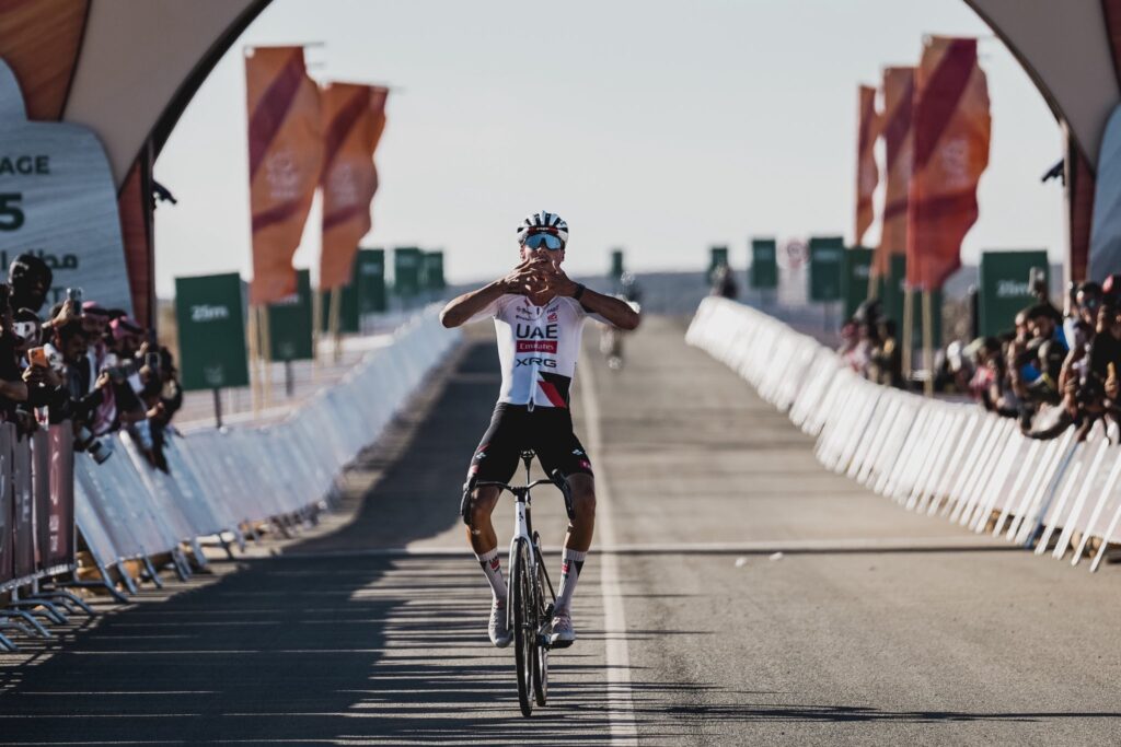 Todo apuntaba a Harrat Uwayrid. Tres kilómetros al 12 por ciento, con rampas del 20. Un muro. El Bahrain de Afonso Eulalio y el Tudor de Voisard apretaron desde lejos. La fuga se deshilachó. La carretera empezó a morder.