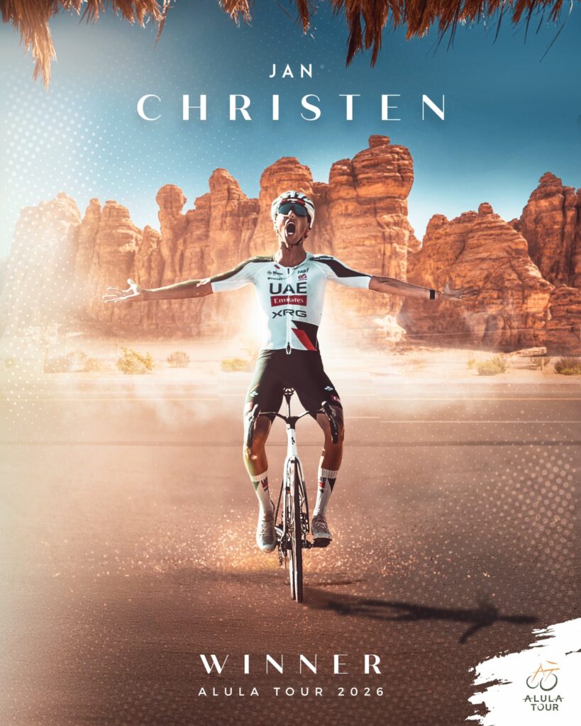 Jan Christen ya tiene su gran carta de presentación. El suizo de 21 años se proclamó vencedor de la sexta edición del AlUla Tour tras una última etapa eléctrica entre AlUla Old Town y Skyviews of Harrat Uwayrid, 163,9 kilómetros que acabaron decidiendo todo. Ataque, vuelo en solitario y maillot verde para el corredor del UAE. En el podio, arropado: Sergio Higuita fue segundo e Igor Arrieta, tercero.
