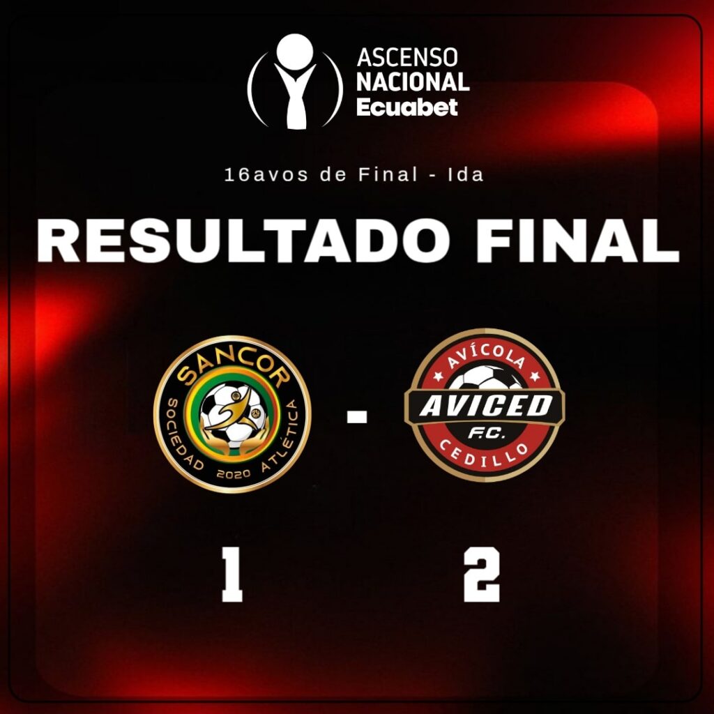 Aviced FC consiguió una valiosa victoria en condición de visita ante Sancor, por el marcador de 2-1, en el duelo de ida de los 16avos de Final del Campeonato Nacional de Ascenso Ecuabet 2025.