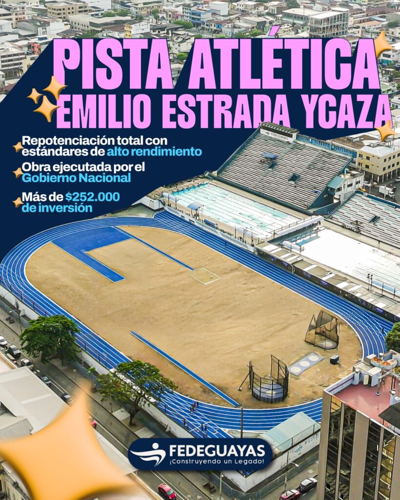 En un evento llevado a cabo en las instalaciones de la Federación Deportiva del Guayas (Fedeguayas), ubicada en la calle José Mascote, que contó con la presencia del presidente de la República, Daniel Noboa Azín, se entregó la rehabilitación de la pista atlética Emilio Estrada.