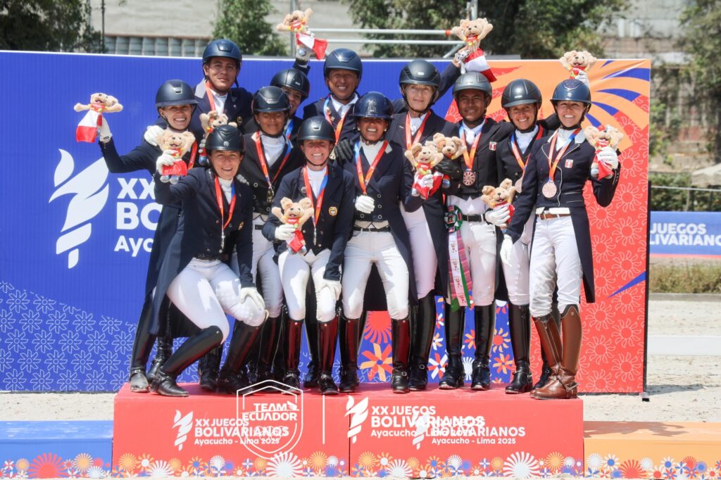 Ecuador ganó la prueba de Adiestramiento por Equipos en los XX Juegos Bolivarianos Ayacucho–Lima 2025 con un puntaje total de 402.469, superando a Colombia (396.058) y Perú (380.176). El equipo estuvo integrado por los binomios conformados por María José Granja con Shir Khan, Franziska Rosa Klinkicht con Bengalo Guardiola II, Carolina Espinoza con Pícaro y Julio César Mendoza con Deparon.