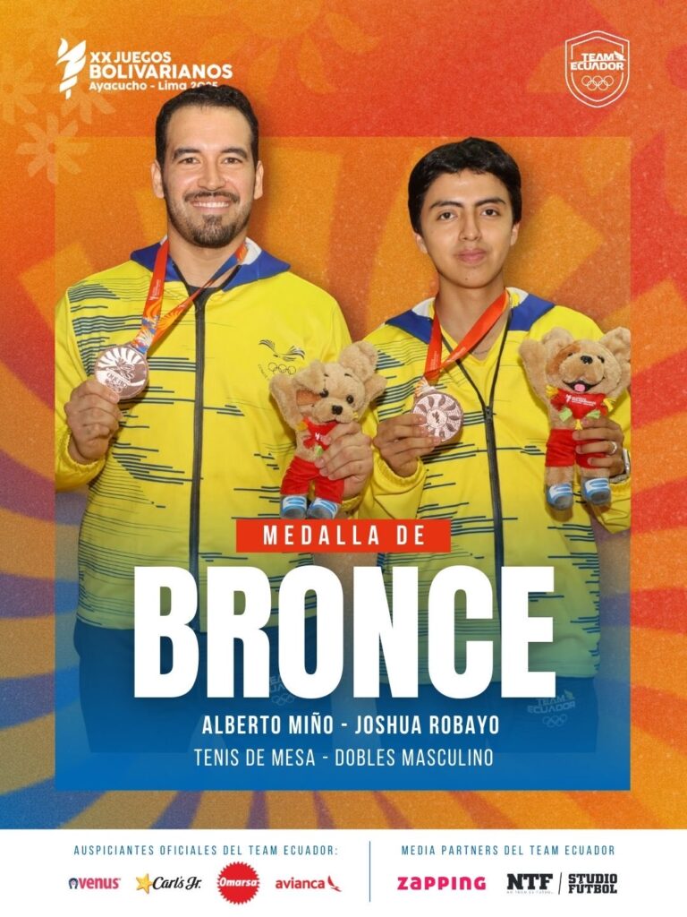 En dobles masculinos, la dupla integrada por Jorge Alberto Miño y Joshua Robayo alcanzó un valioso tercer lugar.