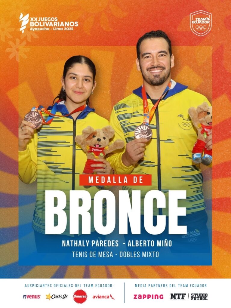 El doble mixto cerró la cosecha tricolor con otro bronce obtenido por la pareja conformada por Jorge Alberto Miño y Nathaly Paredes.