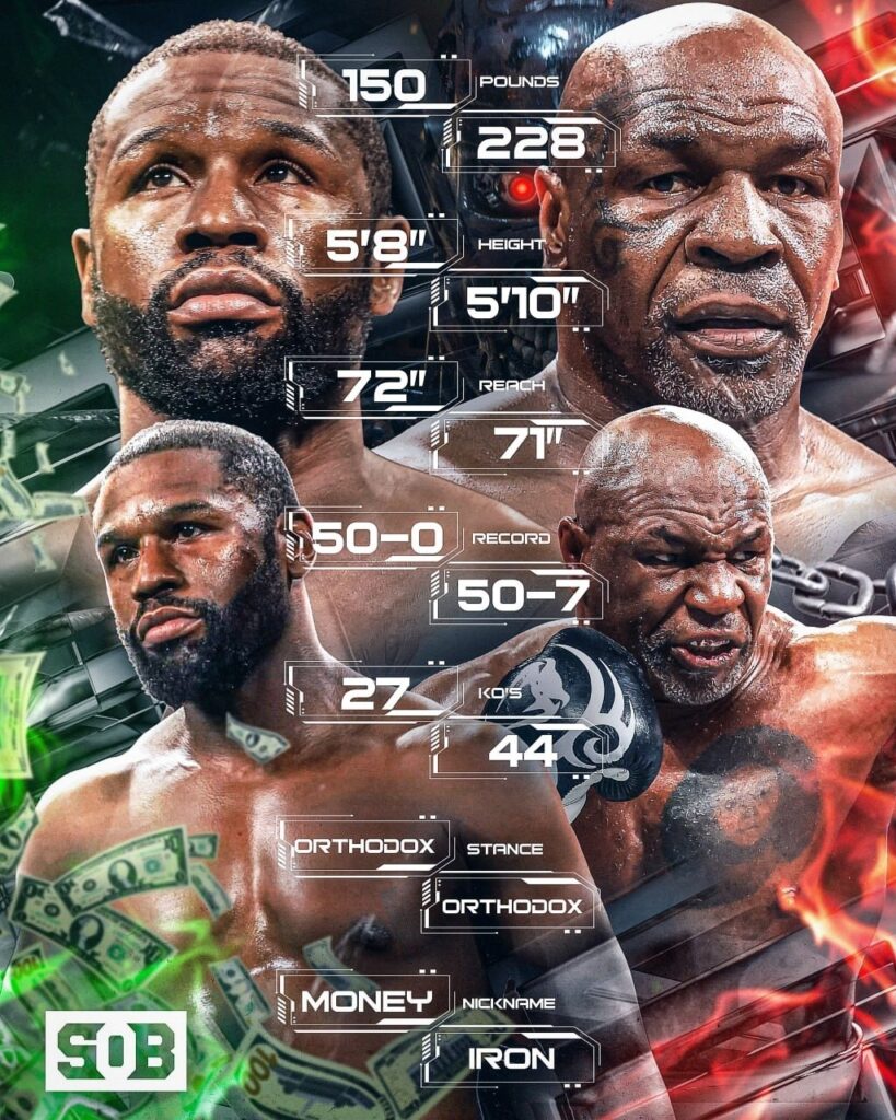 La pelea de Tyson con Jake Paul consistió en ocho asaltos de dos minutos, al igual que la pelea más reciente de Mayweather, que fue una revancha contra John Gotti III. Se espera un estilo similar para Tyson-Mayweather.