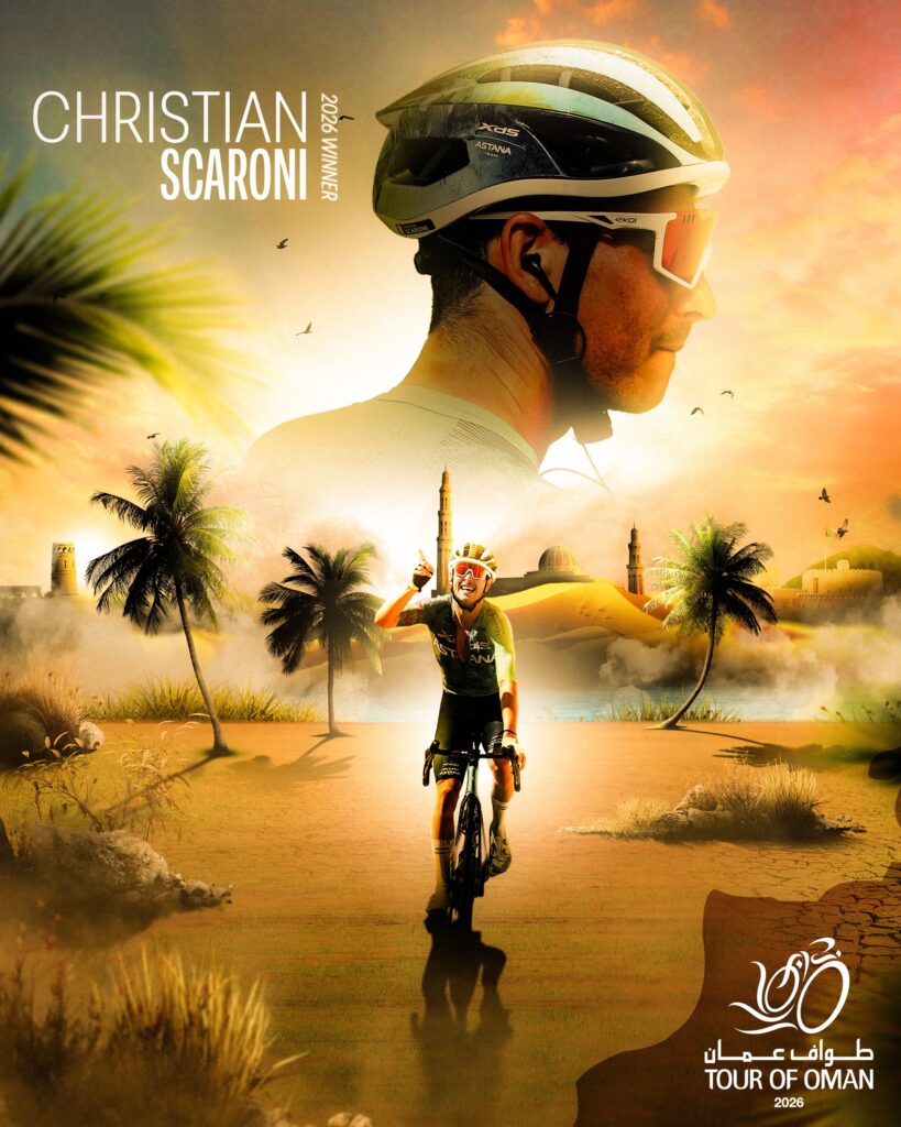 En un final espectacular, el italiano Christian Scaroni (XDS Astana Team) ganó magistralmente la última etapa en la cima de Green Mountain y le arrebató el liderato al suizo Mauro Schmid (Team Jayco AlUla) para terminar en lo más alto del podio en el Tour de Omán.