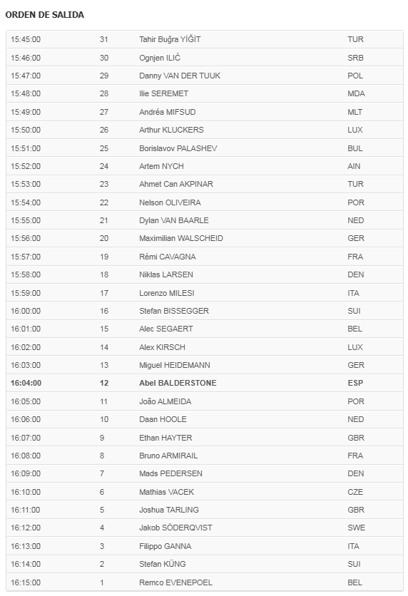 Vine (por ser australiano) y Van Wilder (lesión), que acompañaron al triunfador belga en el podio de Ruanda, no estarán presentes. Los principales rivales serán el italiano Ganna y el británico Tarling.