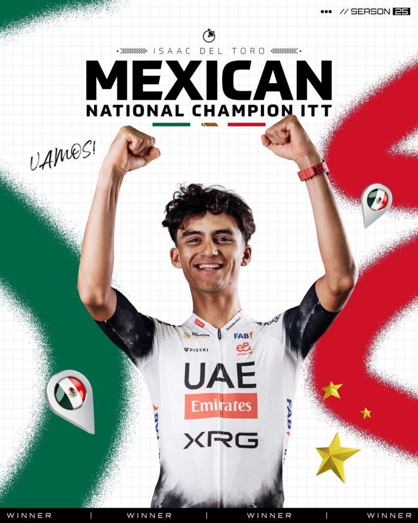 El ciclista mexicano Isaac del Toro se convirtió en el nuevo campeón nacional (México) en la prueba contrarreloj de la categoría élite varonil en su tierra Ensenada, Baja California. El ensenadense conquistó la ruta con un tiempo de 25:25.74 para quedarse con la primera posición.