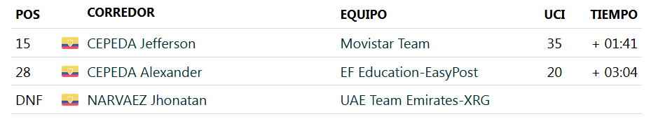 En el incidente, el equipo UAE perdió a dos nuevos corredores, el danés Mikkel Bjerg y el colombiano Juan Sebastián Molano, luego del abandono la víspera del ecuatoriano Jhonatan Narváez, víctima de una violenta caída por la que fue trasladado a un hospital para observación
