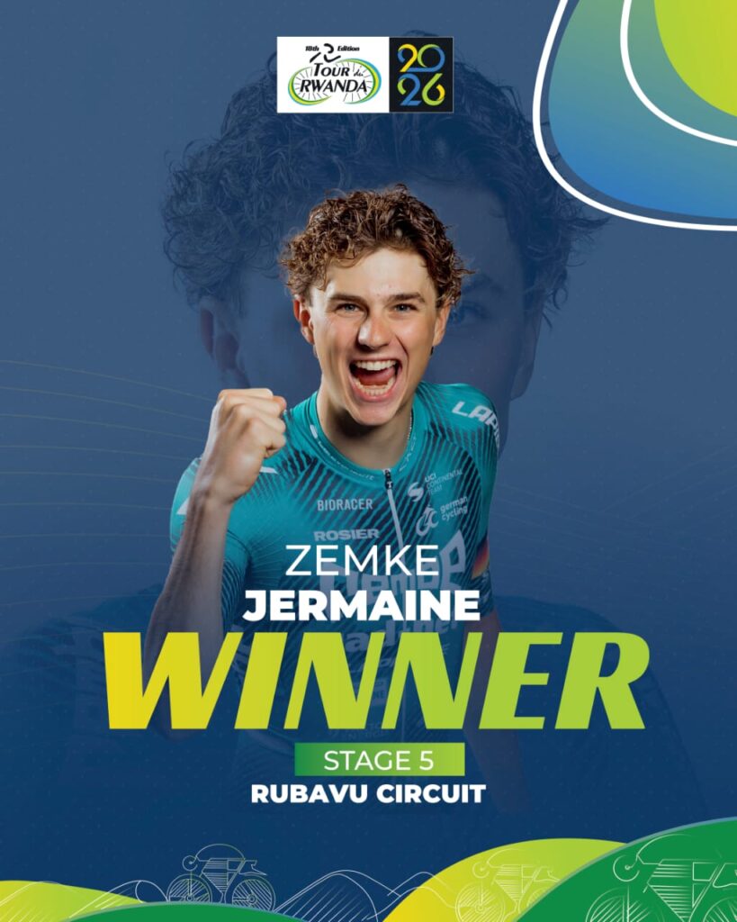 La quinta etapa del Tour de Ruanda 2026 quedó en manos de Jermaine Zemke (Rembe | rad-net). El pedalista alemán fue el más rápido en el embalaje, luego de recorrer 82 kilómetros en la ciudad costera de Rubavu.