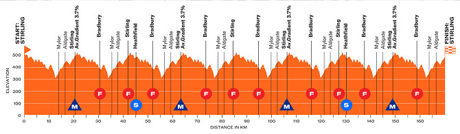 La última jornada con salida y meta en Stirling ofrece un circuito clásico en la prueba, sin gran desnivel, pero con muchos repechos encadenados, propicios para velocistas o rematadores.