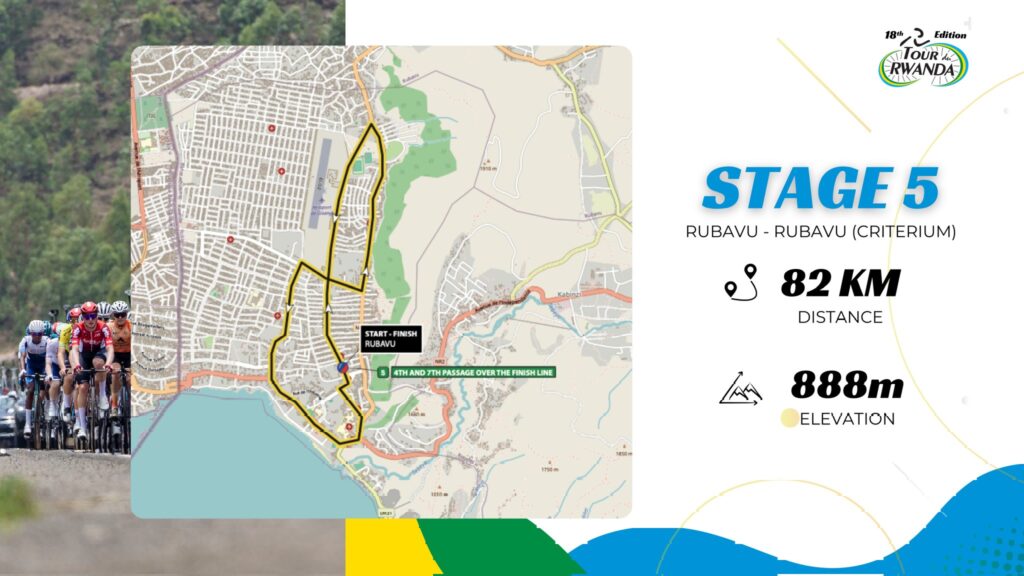 Este jueves se disputará la quinta etapa, con salida y llegada en Rubavu sobre 82 kilómetros repartidos en nueve vueltas a un circuito de 9,11 km. Sin puertos puntuables y con un desnivel acumulado de 939 metros, la jornada podría favorecer a los corredores rápidos o a intentos ofensivos en los sprints intermedios (vueltas 4 y 7), aunque la batalla por la general seguirá muy abierta tras el vuelco vivido en esta cuarta etapa.