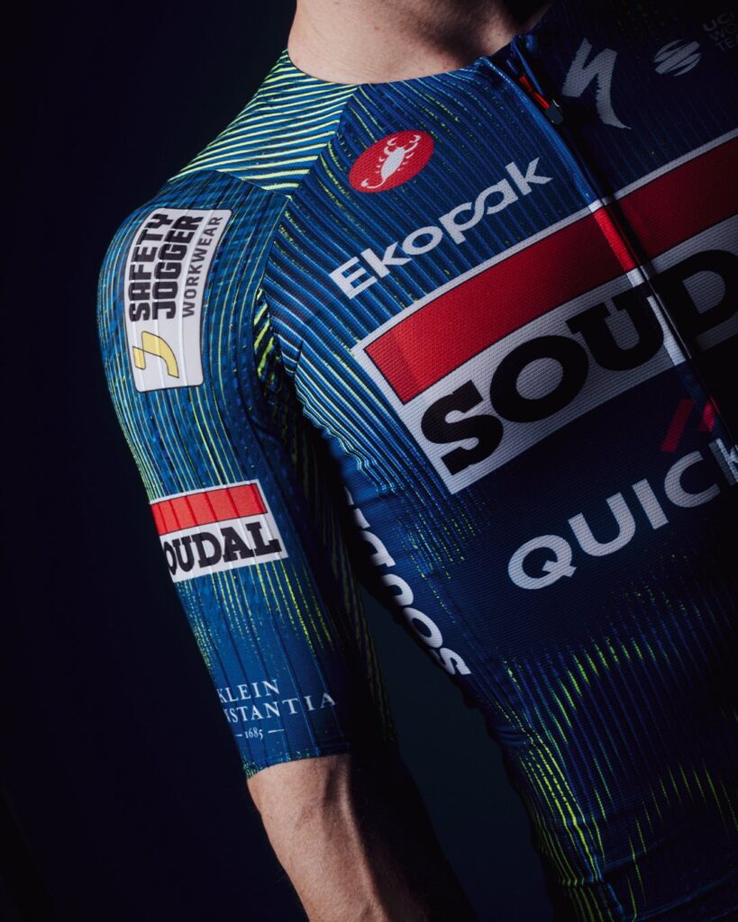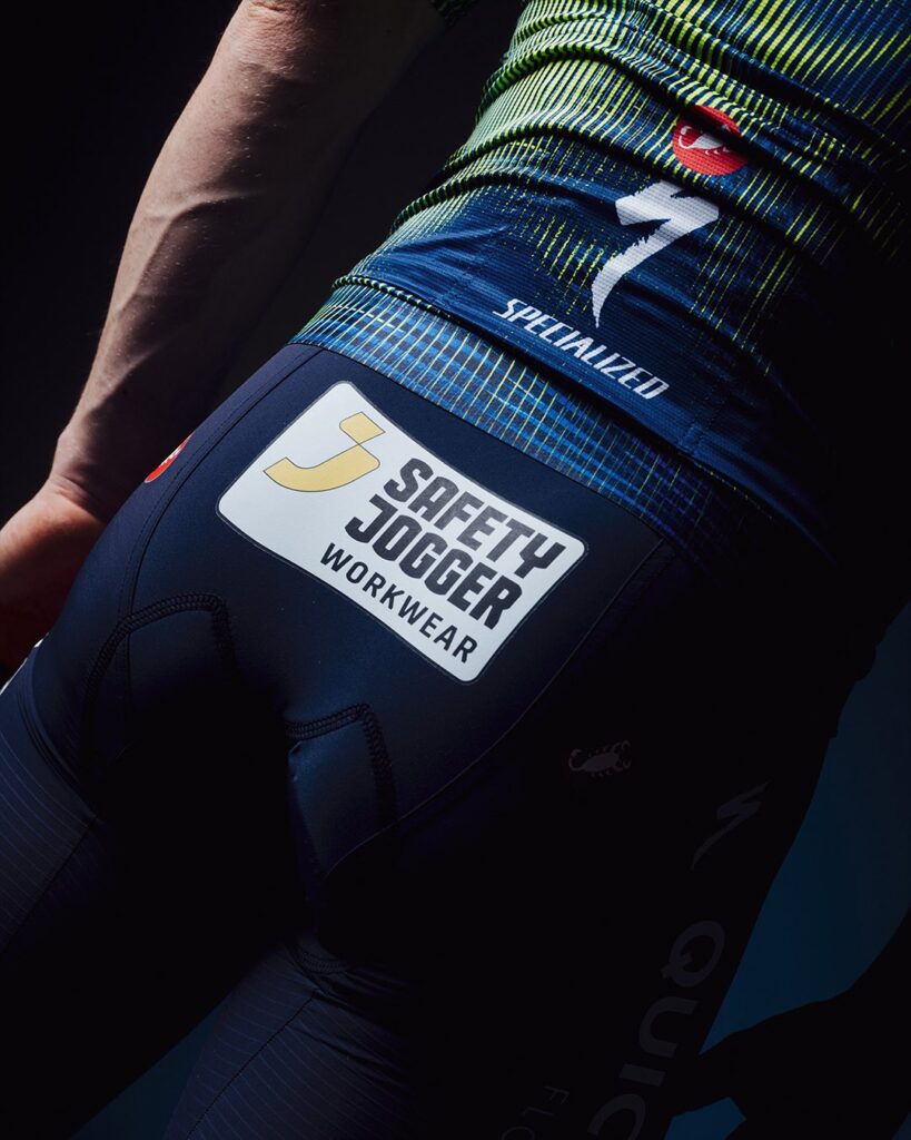 En este contexto, Soudal-Quick Step ha confirmado la ampliación de su acuerdo con Safety Jogger Works, patrocinador del equipo desde 2022. La marca, especializada en soluciones de protección individual, incrementa su visibilidad en la nueva equipación masculina, con su logotipo presente ahora en tres puntos clave: hombros, calcetines y, como principal novedad, la parte trasera del culotte, justo por debajo de los logotipos de los patrocinadores principales Soudal y Quick-Step.