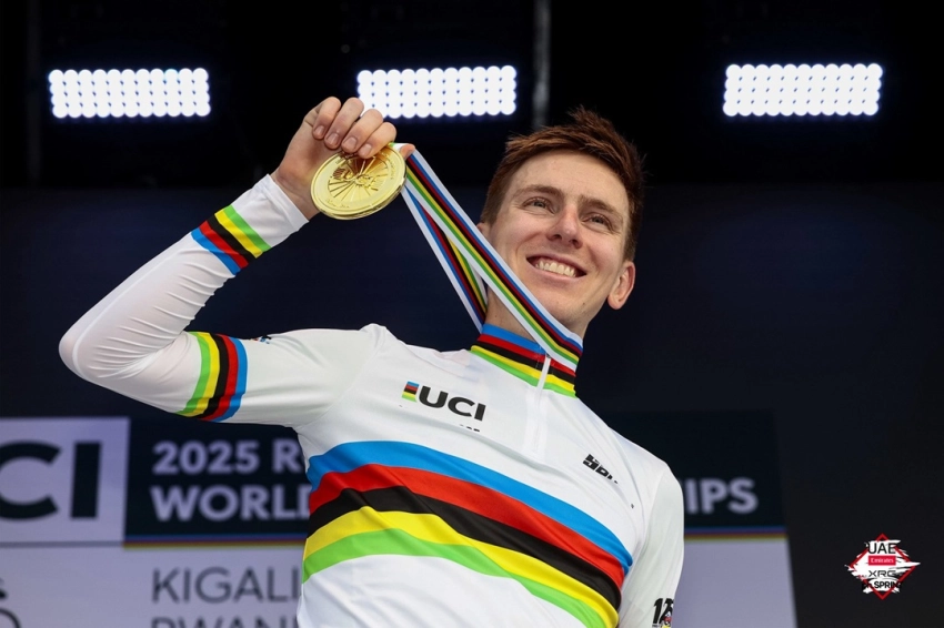 Tadej Pogacar revalidó este domingo, 28 de septiembre, en Kigali su título de campeón del mundo, después de atacar a 104 kilómetros para meta en el Mundial de Ciclismo 2025 en África.