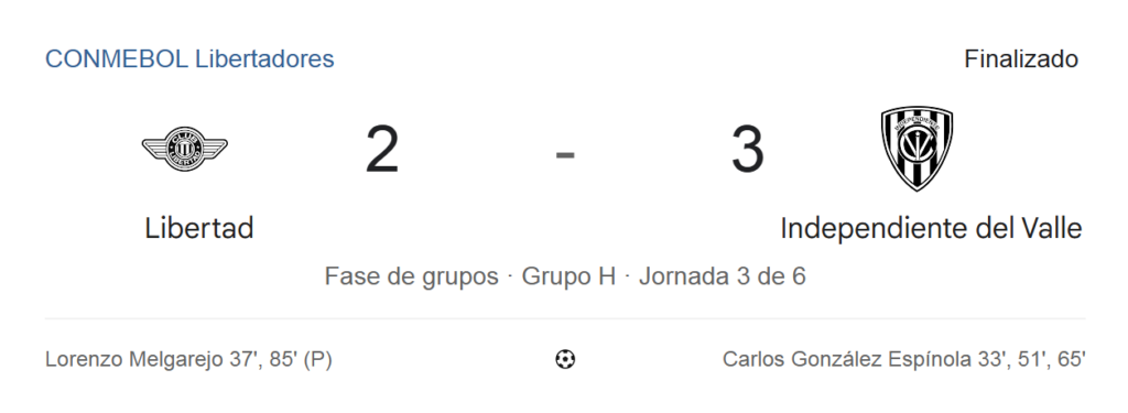 El campeón de la Liga Ecuabet no bajó los brazos, fue intenso y aprovechó que Libertad no encontraba la manera de levantarse en el terreno de juego; ya a los 65 minutos, la fórmula se repitió y ‘Cocoliso’ González, con otro frentazo, selló su hat-trick y el 1-3 ante los paraguayos.