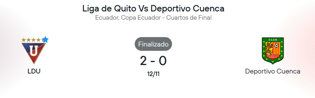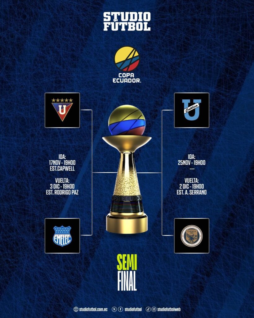 Liga de Quito clasificó a la semifinal de la Copa Ecuador y su rival será Emelec, donde repetirán el cruce de 2019 en el que los albos terminaron llegando a la final para posteriormente ganar el torneo por primera vez en ese entonces. La otra llave es la de Universidad Católica frente a Cuenca Juniors y la FEF próximamente confirmará los horarios.
