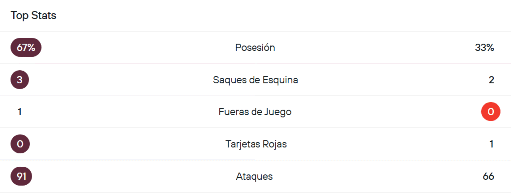 Los albos desde el inicio dominaron el balón y por medio de Lisandro Alzugaray llegaron las opciones para convertir, aunque sin tanta profundidad por parte del local. Pasado el primer cuarto de hora, el atacante argentino sacó un remate potente en donde el arquero Brian Bustos con una gran atajada evitó el peligro.