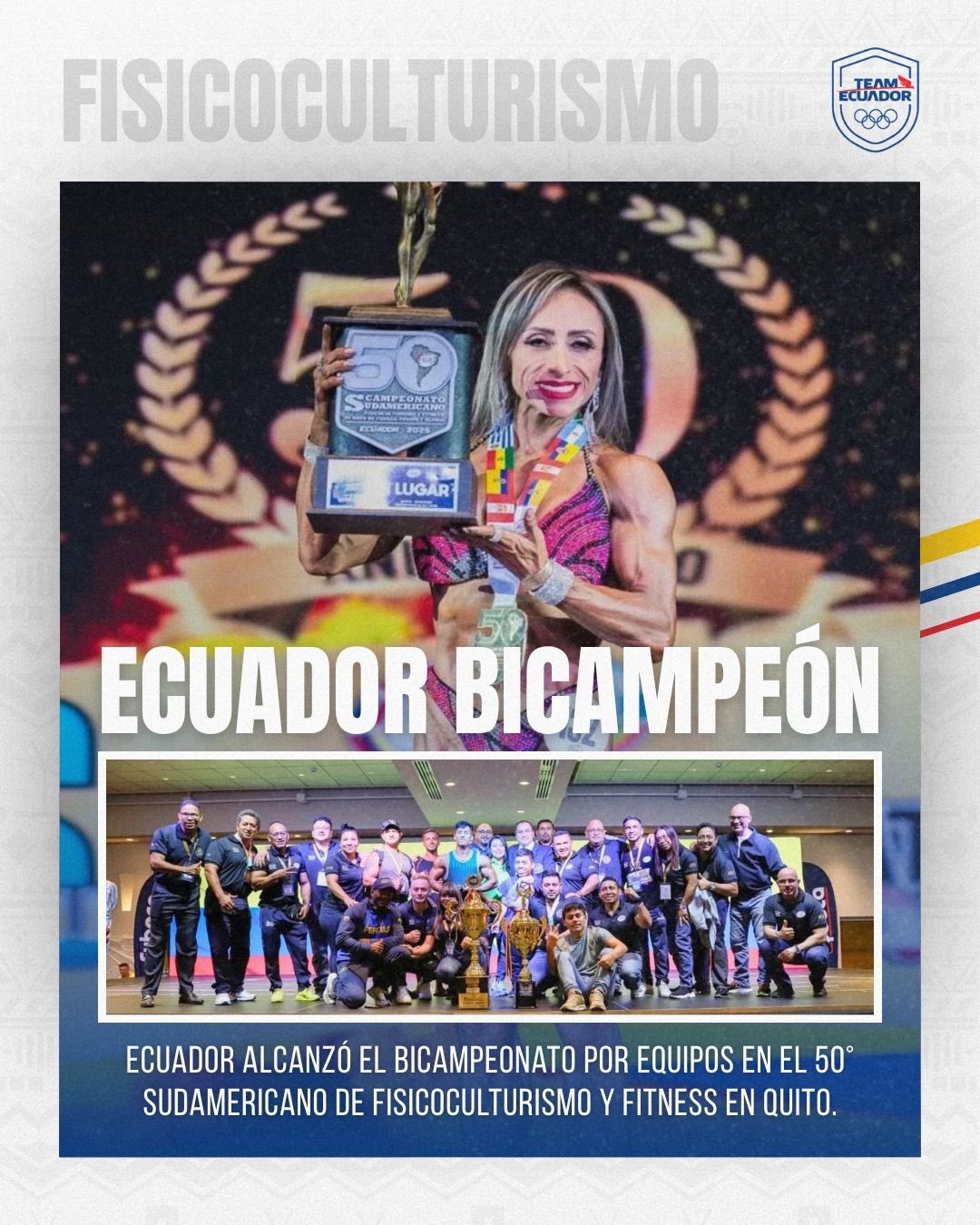 La selección ecuatoriana de fisicoculturismo y fitness logró el bicampeonato por equipos en el 50° Campeonato Sudamericano de Fisicoculturismo y Fitness, realizado del 18 al 21 de septiembre en el Hotel Hilton Colón, Quito, organizado por la Confederación Sudamericana de Fitness y Fisicoculturismo (CSFF) y la Federación Ecuatoriana de Fisicoculturismo y Potencia (FEFICULP).