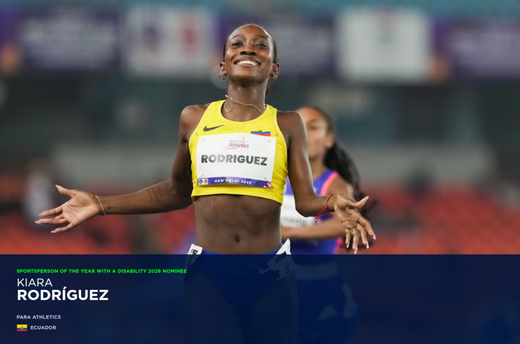La atleta paralímpica ecuatoriana Kiara Rodríguez figura entre los finalistas de los Premios Laureus 2026, que se entregarán en Madrid, por tercera vez consecutiva, el próximo 20 de abril.