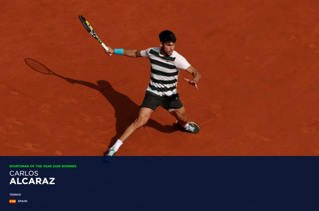 Carlos Alcaraz (España) tenis: ganó Roland Garros y el Abierto de Estados Unidos, terminando 2025 como el número uno del mundo.
