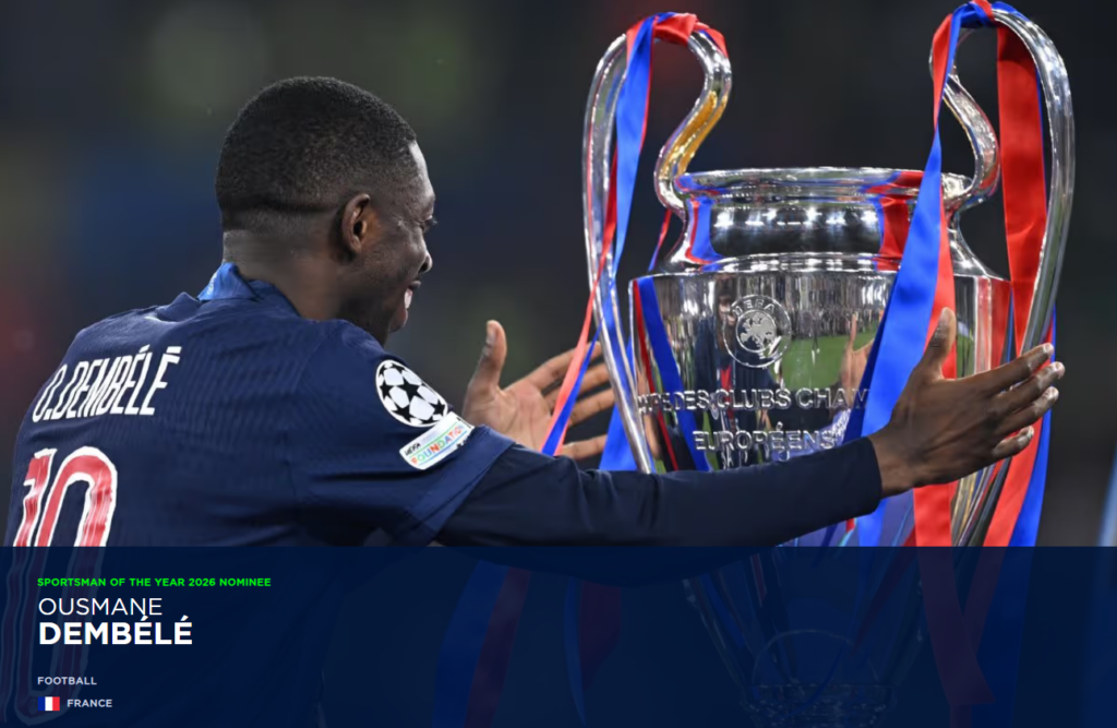Ousmane Dembélé (Francia) fútbol: máximo goleador de los seis títulos del Paris Saint-Germain en 2025, ganador del Balón de Oro y del premio FIFA The Best.