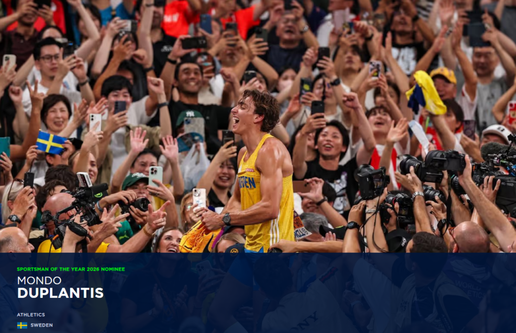 Mondo Duplantis (Suecia) atletismo: ganó su tercer campeonato mundial consecutivo y estableció cuatro nuevos récords mundiales, manteniéndose invicto en 2025.