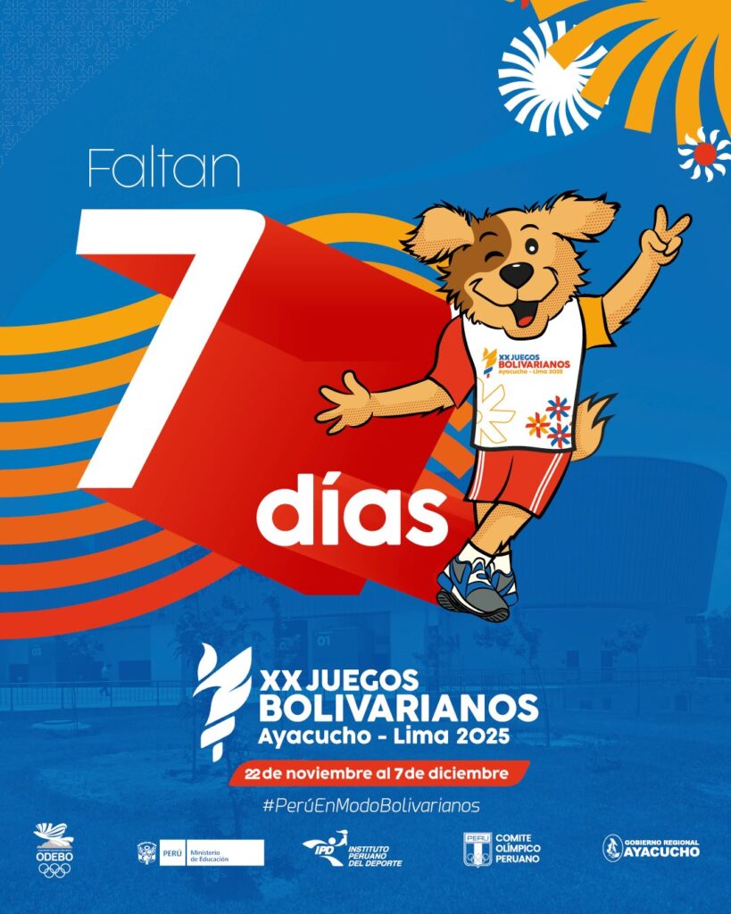 Los Juegos Bolivarianos Ayacucho – Lima 2025 se celebrarán del 22 de noviembre al 7 de diciembre en Perú, con sedes en Lima y Ayacucho. Participarán 17 delegaciones y más de 4.000 atletas. Este evento representa el primer gran paso del ciclo olímpico rumbo a Los Ángeles 2028.