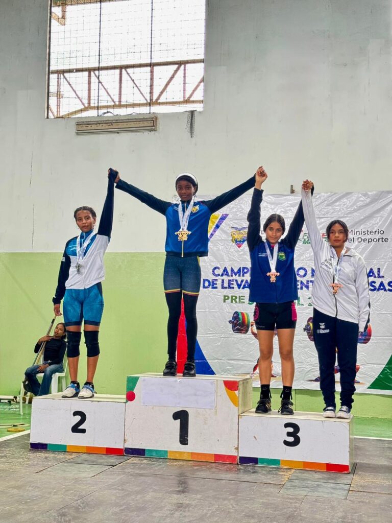 La Federación Deportiva Provincial de Santo Domingo de los Tsáchilas felicita a la deportista Sarahí Realpe, junto a sus entrenadores Alexandra Arteaga y David Arteaga, por su destacada participación en el Campeonato Nacional Prejuvenil de Levantamiento de Pesas.