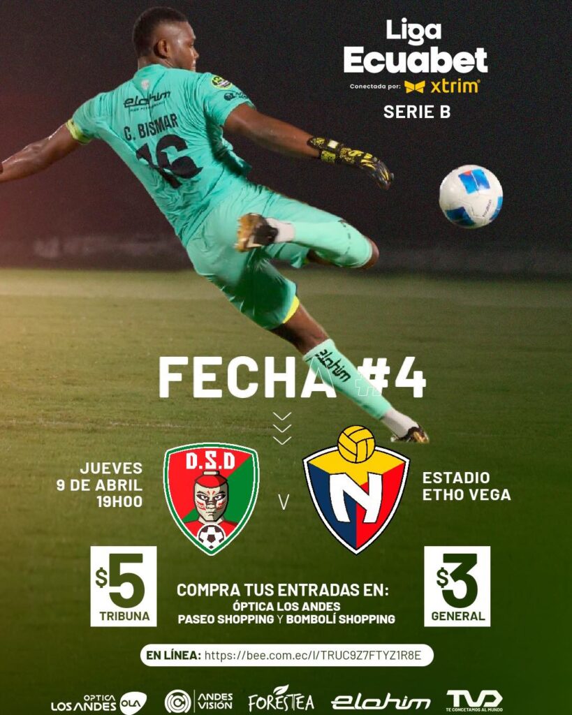 Deportivo Santo Domingo enfrentará a El Nacional este jueves 9 de abril, a las 19:00, en el Estadio Olímpico Etho Vega Baquero, en Santo Domingo, por la cuarta fecha de la Serie B del fútbol ecuatoriano, en busca de sostener su buen momento competitivo.