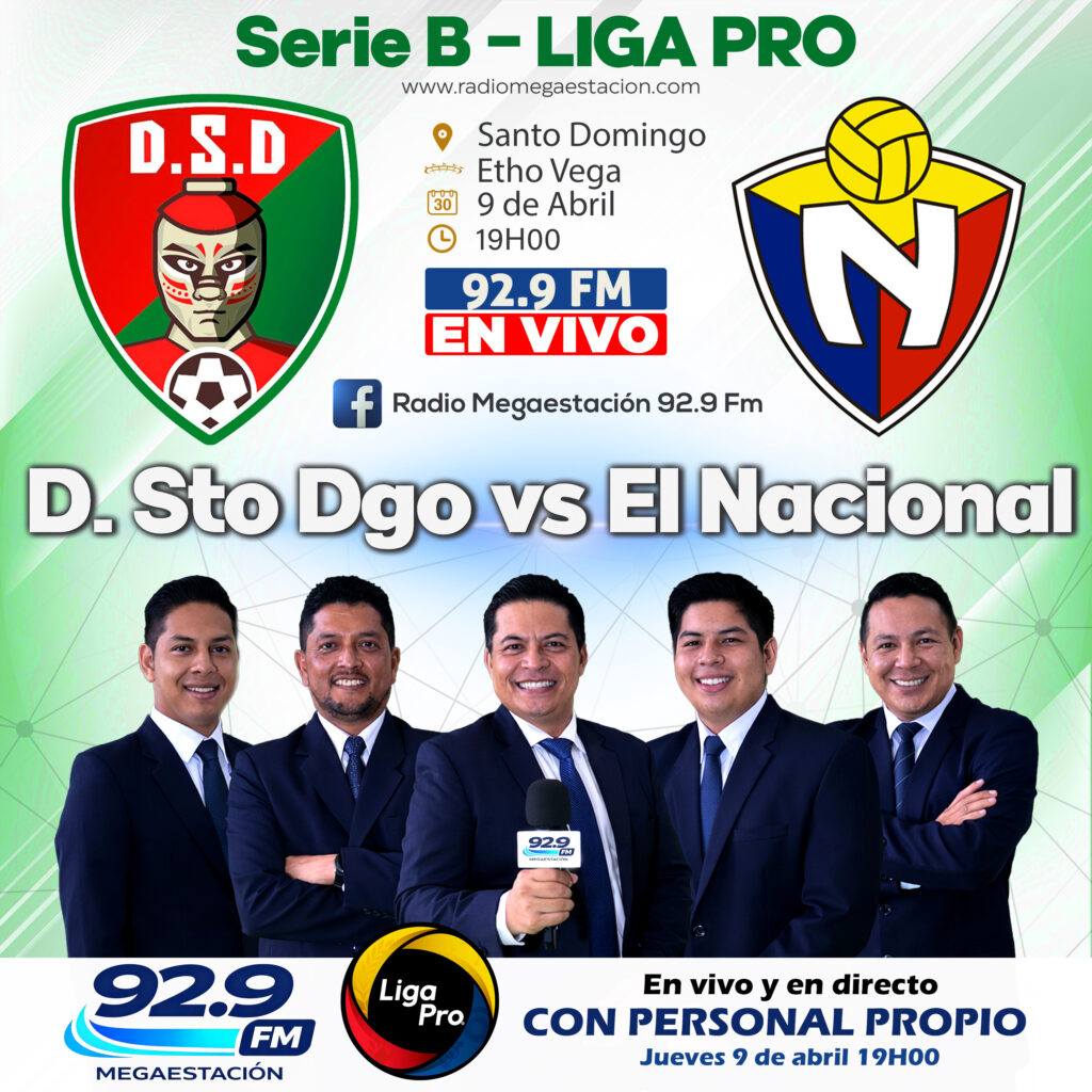 eportivo Santo Domingo enfrentará a El Nacional este jueves 9 de abril, a las 19:00, en el Estadio Olímpico Etho Vega Baquero, en Santo Domingo, por la cuarta fecha de la Serie B del fútbol ecuatoriano, en busca de sostener su buen momento competitivo.