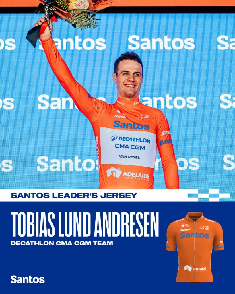 Andresen se impuso en la primera etapa en línea del Tour Down Under después de superar al esprint a otros dos velocistas de renombre como Matthew Brennan y Sam Welsford en la meta de Tanunda. Un triunfo que, además, tiene premio doble para Andresen, ya que se convierte en el nuevo líder de la general.
