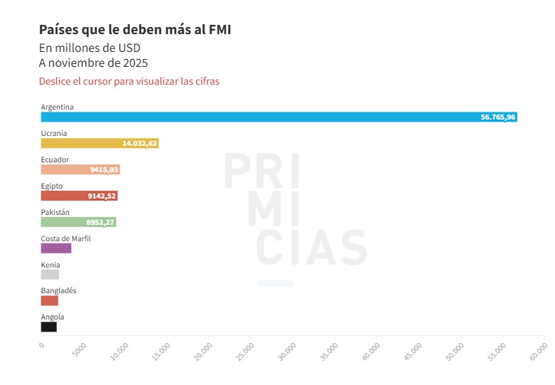 Por ahora, y sin el desembolso de USD 620 millones pendiente para cerrar 2025, Ecuador ya es el tercer país que más dinero le debe al FMI.