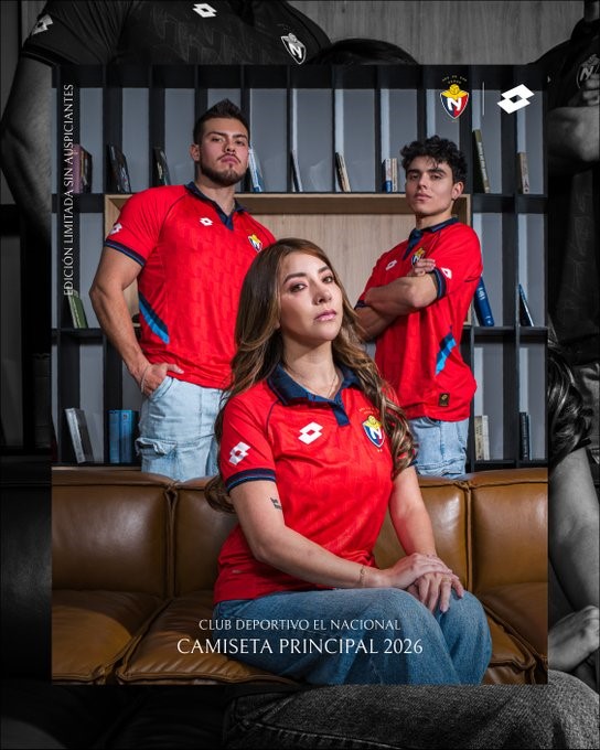 Buenas noticias para los hinchas de El Club Deportivo El Nacional, con la presentación de su nueva indumentaria para disputar la Serie B del fútbol ecuatoriano, temporada en la que buscará el anhelado ascenso a la primera división. Ahora, El Nacional contará con tres equipaciones, la primera mantiene la tradicional camiseta roja, que incorpora un elegante cuello azul y detalles del mismo color en los costados y las mangas, respetando la identidad histórica del club.