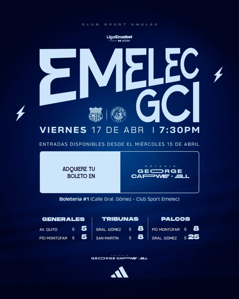 El partido entre Emelec y Guayaquil City se disputará este viernes 17 de abril, a las 19:30.