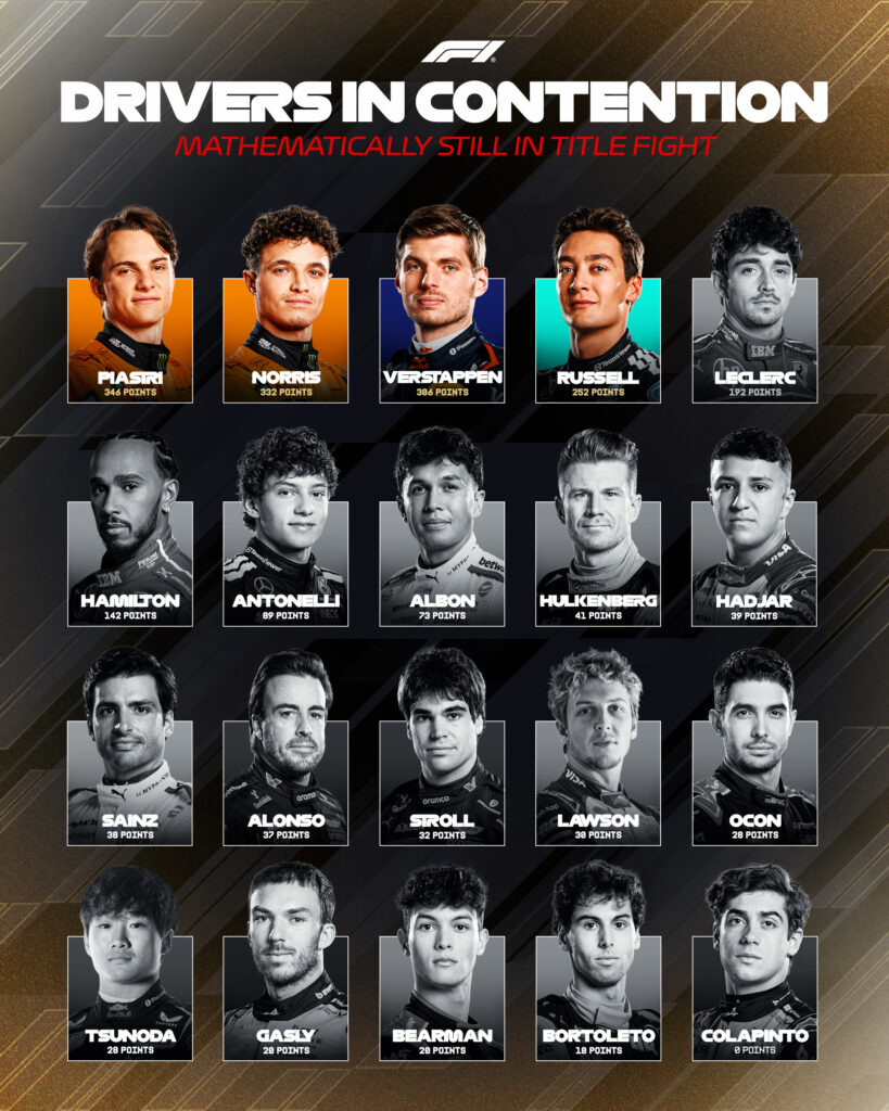 «Sabía que la carrera no iba a ser fácil, teniendo en cuenta la diferencia de ritmo entre el coche de Lando Norris y el mío», explicó el astro neerlandés, que también ganó el sprint del sábado y que en sólo dos días le recortó 23 puntos a Piastri. El australiano lidera ahora con 346 unidades, catorce más que su compañero inglés y con 40 respecto a él, a falta de cinco Grandes Premios y dos pruebas sprint.