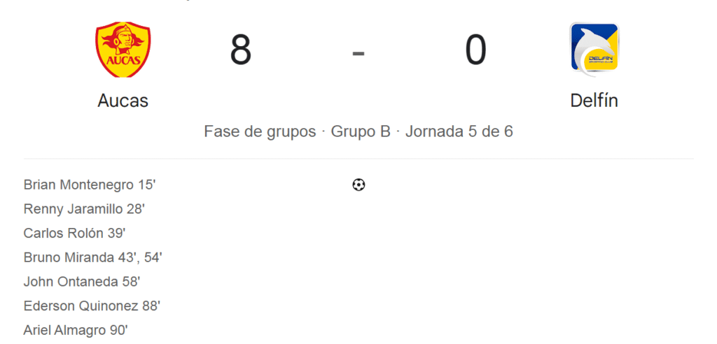 Aucas cerró la quinta fecha del hexagonal por la Copa Sudamericana del campeonato ecuatoriano e hizo historia. El conjunto oriental venció por 8-0 al cuadro cetáceo y marcó la máxima goleada desde que se constituyó la Liga Profesional de Fútbol en el país.