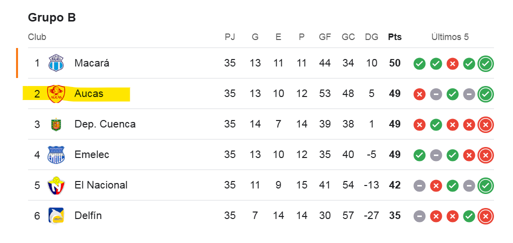 Dentro de su liguilla, Aucas estaba obligado a ganar para seguir en pelea por el cupo hacia el segundo máximo torneo de clubes de América. Estaba en el cuarto puesto del grupo y, de ganar, podría igualar al segundo y al tercero y ponerse a un punto del líder.