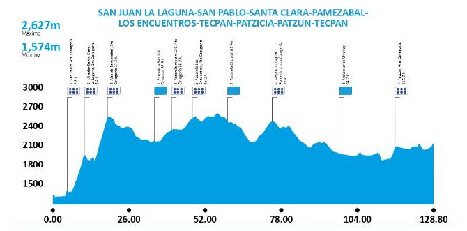 Este viernes se disputará la octava etapa de la Vuelta a Guatemala, una exigente jornada de 128,8 kilómetros entre San Juan La Laguna y Patzún, que sustituye al final inicialmente previsto en Tecpán. Con más de 2.800 metros de desnivel y siete puertos de montaña, entre ellos el durísimo Alto de Pamezabal (1ª cat., 4,6 km al 12,4%), se espera un día decisivo para la clasificación general.