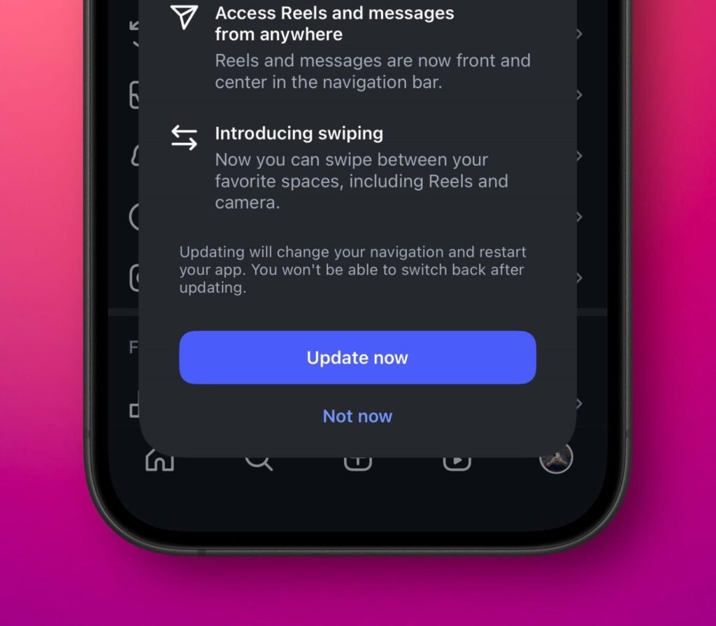La red social propiedad de Meta, Instagram en su nueva actualización, reorganizó la interfaz de usuario de la aplicación móvil para adaptar el orden de las pestañas al uso que le dan los usuarios, priorizando los vídeos ‘reels’ y los mensajes directos.