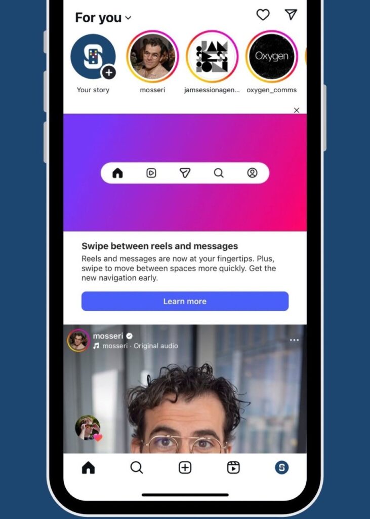 Además, sumado a este cambio de orden de las pestañas en la interfaz de usuario para móvil, Instagram también ha incorporado la posibilidad de deslizar la pantalla a derecha o izquieda para moverse entre pestañas. Por el momento, no es un cambio definitivo, sino que forma parte de una prueba opcional a la que se pueden unir los usuarios de Instagram, para que puedan adaptarse a él antes de su lanzamiento oficial.