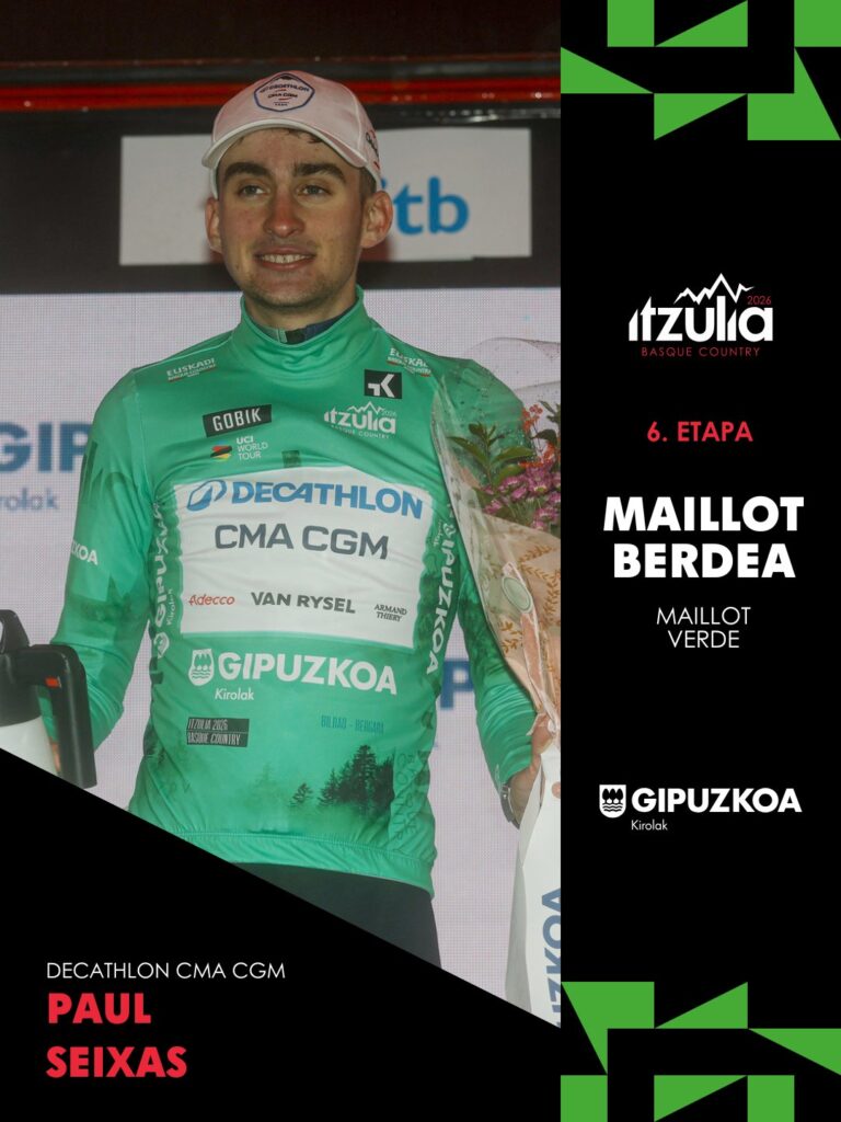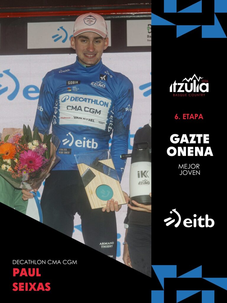En un final pasado por la lluvia, Paul Seixas (Decathlon CMA CGM Team) defendió su liderato en la última jornada y se consagró campeón de la edición 65 de la Vuelta al País Vasco. El joven corredor francés, que mostró su supremacía en las jornadas montañosas, terminó ganando tres etapas en la denominada Itzulia.