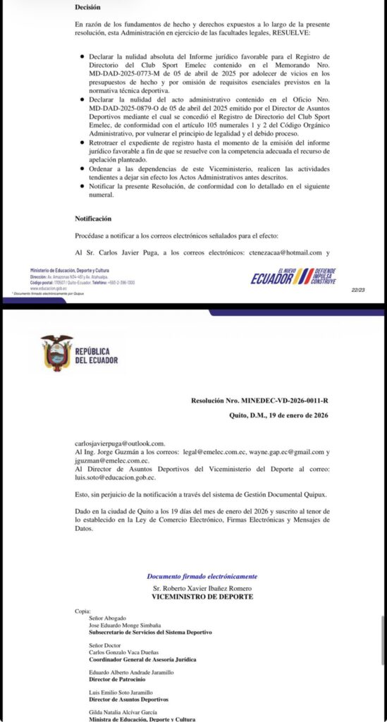 Esta martes, una fuerte sacudida tuvo Emelec, luego de que el Viceministerio del Deporte dejó sin efecto la inscripción de la directiva de Jorge Guzmán, por esta razón salió a defenderse.
