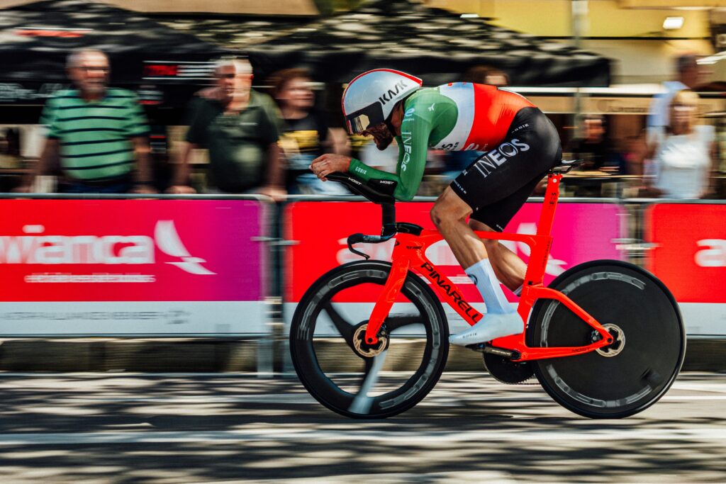 Ganna ha marcado un tiempo de 13 minutos a una media de 56,2 km/h. Le han seguido el australiano Jay Vine (UAE) con el mismo tiempo y el portugués Joao Almeida (UAE) a 7 segundos. El danés Jonas Vingegaard ha sido noveno a 18 segundos.