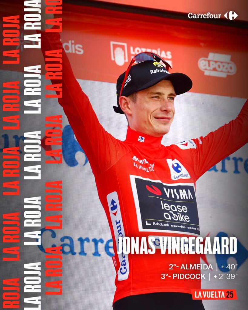 De esta manera, en la general, el portugués ha recortado 10 segundos a al danés, pero Vingegaard todavía aventaja en 40 segundos a Almeida y al británico Tom Pidcock en 2:48 minutos.