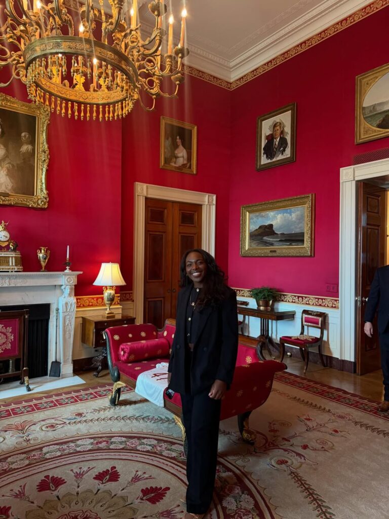 Reasco compartió en sus redes sociales varias imágenes del encuentro. Durante su visita, recorrió algunos espacios emblemáticos, conoció el Salón Rojo y se tomó una fotografía en el escritorio presidencial, acompañada del mensaje: “Presidenta 2026”.